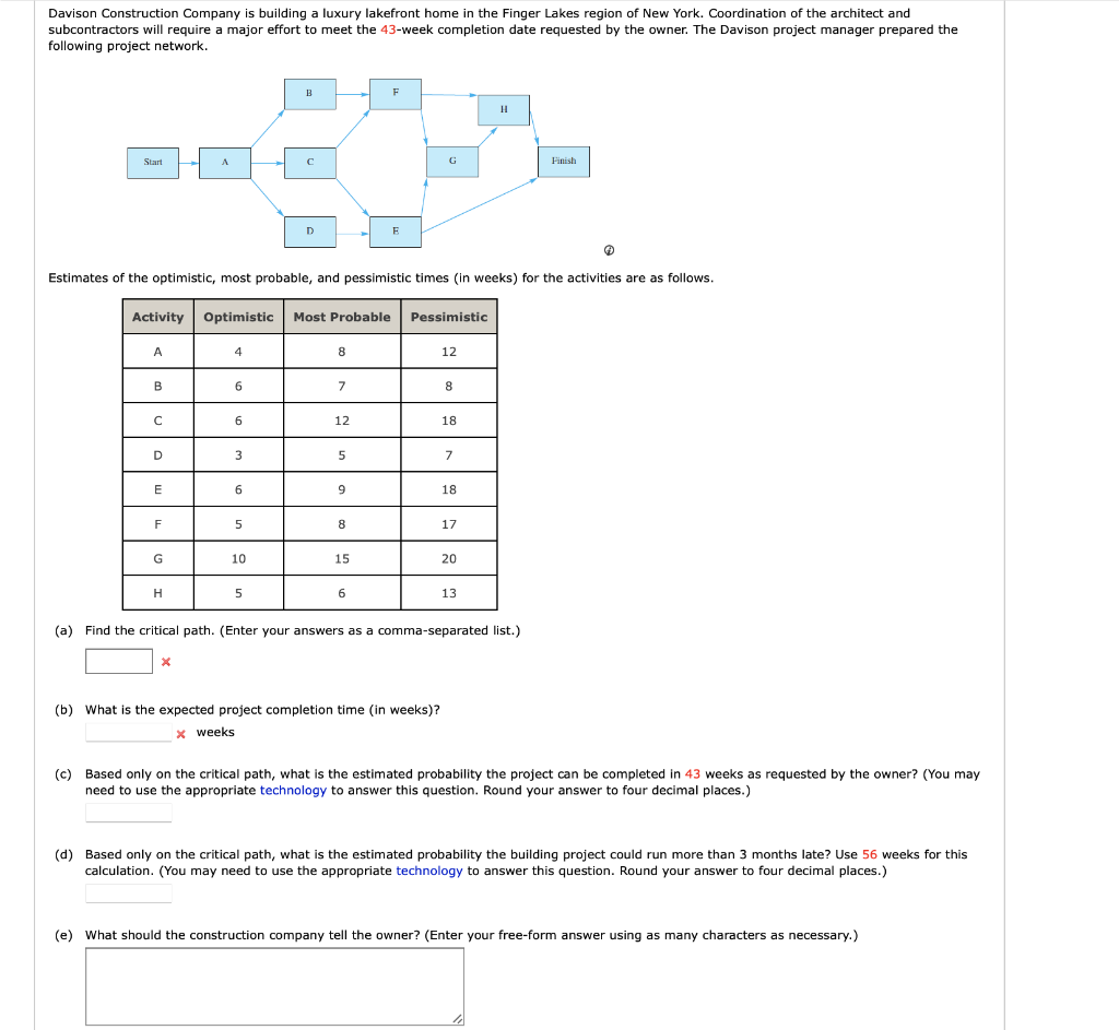 Solved Davison Construction Company Is Building A Luxury Chegg Com